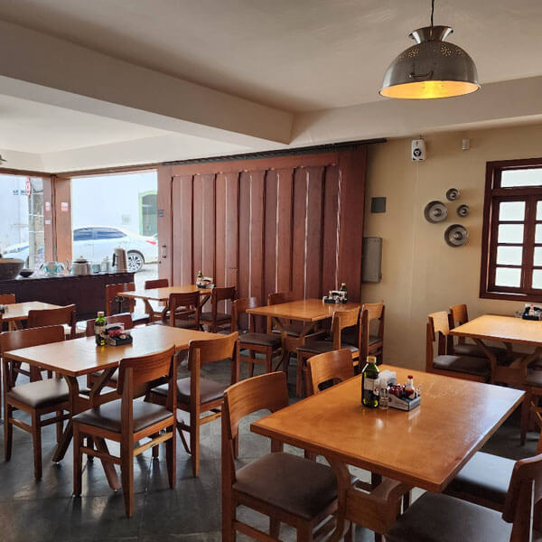 A culinária é o ponto alto da casa: pratos caseiros, muito bem temperados e cheios de sabor. O cardápio variado inclui clássicos como torresmo de barriga, almôndegas e salsichas, sempre preparados com ingredientes de qualidade e aquele toque mineiro que conquista. O preço é outro atrativo, considerado justo e com excelente custo-benefício, especialmente em comparação a outros restaurantes da região. Por isso, é constantemente recomendado por quem quer comer bem, gastar pouco e vivenciar o verdadeiro sabor de Minas em Ouro Preto.