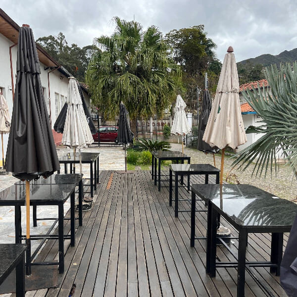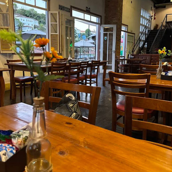 Com clima acolhedor e vista encantadora para as igrejas históricas de Ouro Preto, o restaurante oferece uma experiência tipicamente mineira, unindo sabor, hospitalidade e um ambiente familiar que convida a ficar. O espaço é bonito, amplo e aconchegante, ideal para reunir amigos ou a família em torno de uma boa refeição. À noite, a atmosfera se torna ainda mais especial, com música ao vivo e o charme da cidade iluminada ao fundo, criando um cenário perfeito para momentos agradáveis e memoráveis.